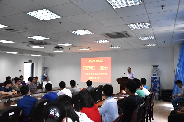 6月6日下午,中国科学院院士、南京微结构国家实验室主任、南京大学固体微结构物理国家重点实验室学术委员会主任邢定钰教授莅临万象城官网,在教二314报告厅作题为“巨磁电阻效应和拓扑量子态”的学术报告。杨震校长与邢院士进行了深入交流,awc777万象城娱乐官网相关负责人、部分教师、研究生和本科生聆听讲座,讲座由awc777万象城娱乐官网院长李兴鳌教授主持。