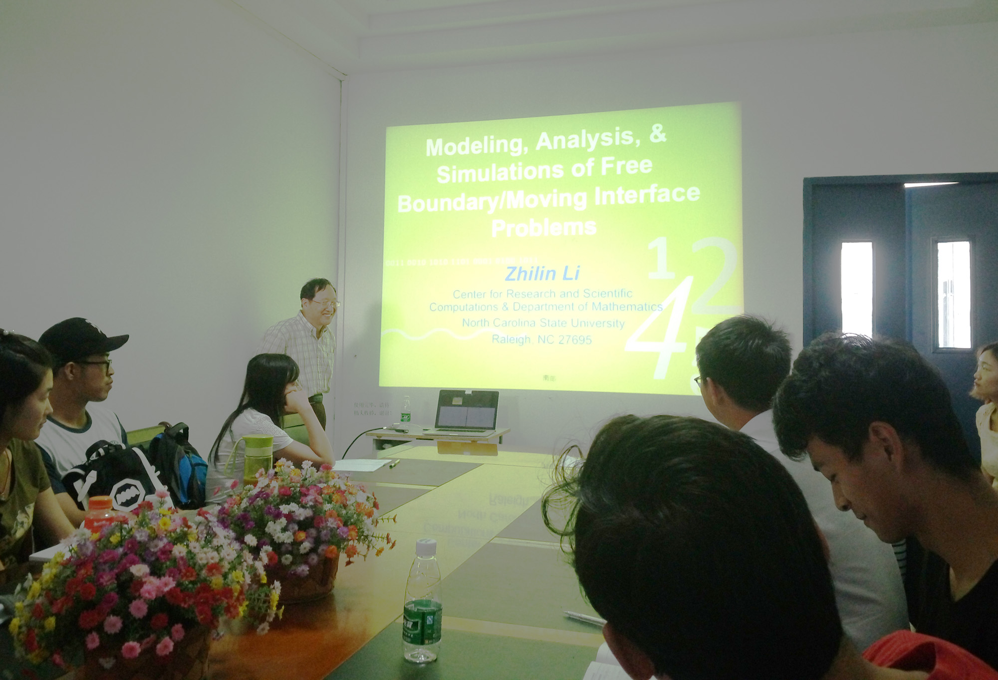 2017年6月19日下午14:00,awc777万象城娱乐官网第112期学术活动在教2-502会议室举行,美国北卡罗来纳州立大学李治林教授应邀莅临awc777万象城娱乐官网并做了题为“Modeling, Analysis, & Simulations of Free Boundary/Moving Interface Problems”的学术报告。报告会由awc777万象城娱乐官网副院长唐加山教授主持。