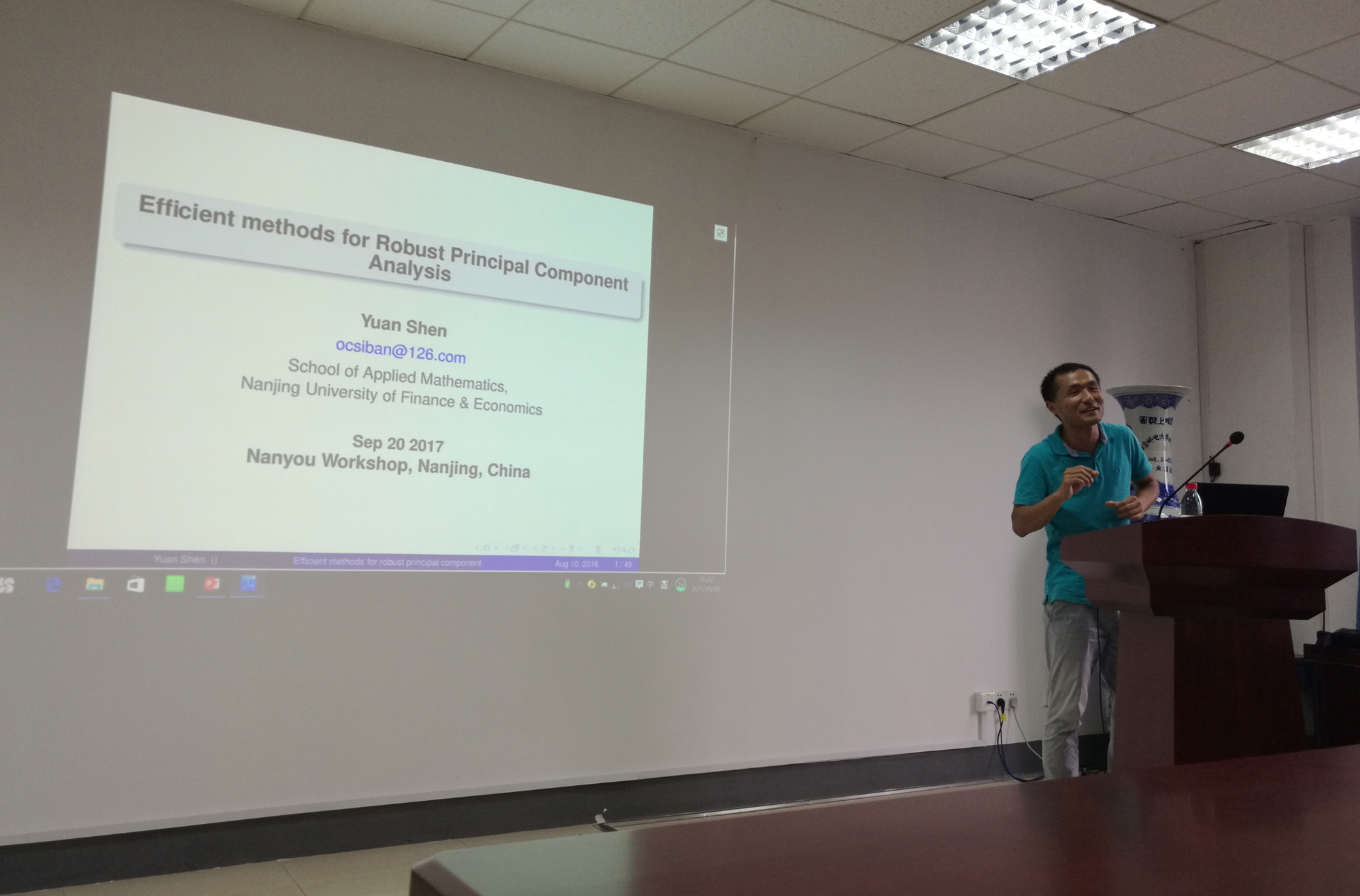 申远副教授的报告题目为“Efficient Methods for Robust Principal Component Analysis”,他围着鲁棒主成分分析这一问题,在合适条件下给出了基于Nuclear-norm的矩阵分离模型。为了提高扩展性,提出并研究了基于非凸、低阶分解模型的几种新方法,并用大量数值实验表明了新算法的高效性。