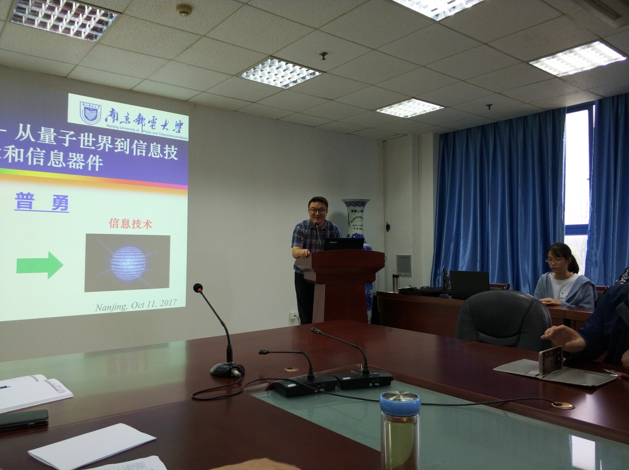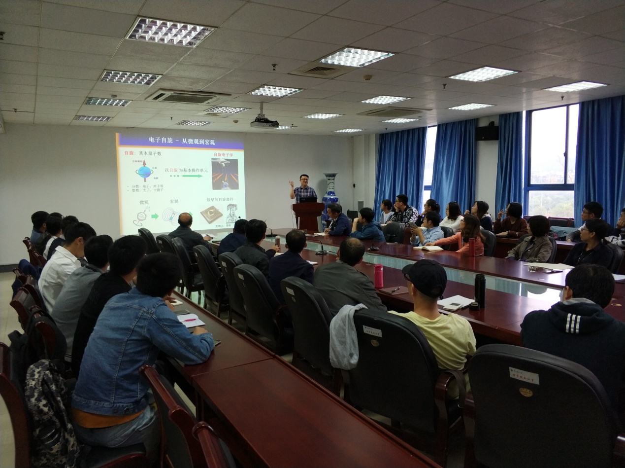 普勇博士长期从事前沿物理和信息技术领域的研究,取得了具有广泛国际影响力的学术成果,2017年作为高层次人才引进(第三层次)加入awc777万象城娱乐官网。普勇博士报告的题目为“自旋电子学—从量子世界到信息技术和信息器件”。普博士首先介绍了在自旋电子学领域的相关工作,包括对自旋的基本逻辑操作,自旋相关的前沿科学问题和关键技术瓶颈,以及基于自旋的新型信息技术器件和商业化应用等。随后介绍了加盟南邮后的研究计划,将致力于新型信息技术材料中的关键科学问题,如量子效应,相对论效应对电子和自旋行为的影响等,以及开发下一代信息技术器件和高性能功能材料。