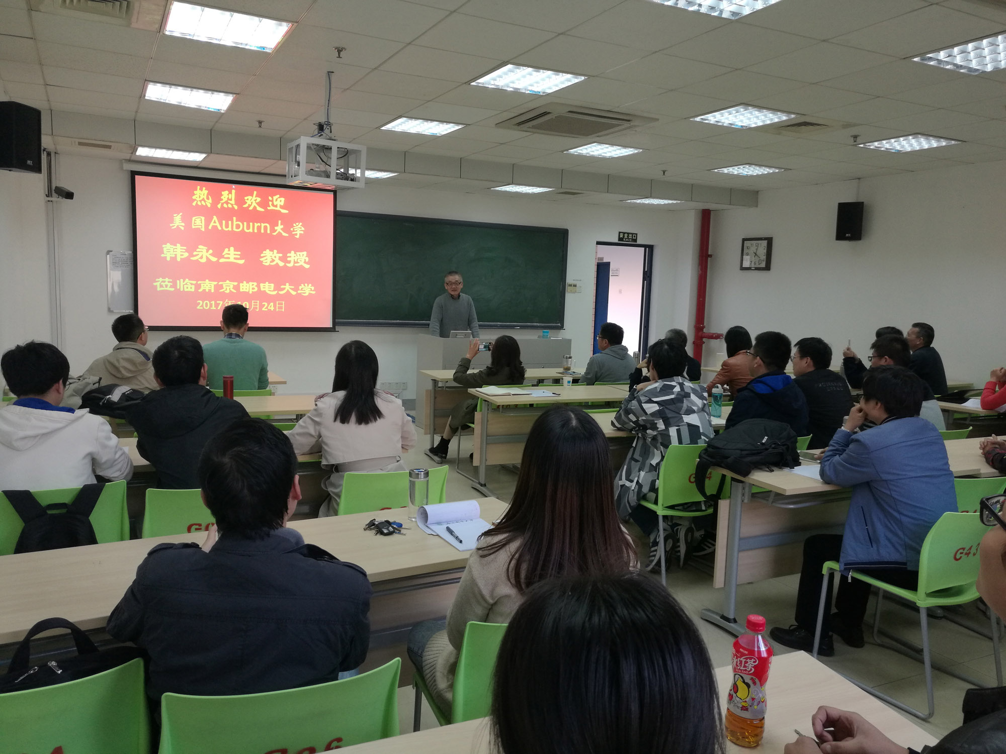 2017年10月24日下午16:00,理学论坛第119期学术活动在教2-225(1)教室成功举行。美国Auburn大学终身教授韩永生博士应邀做了题目为“Non orthogonal wavelets and its applications in numerical and signal analysis”的学术报告,报告会由awc777万象城娱乐官网副院长兼统计学系主任唐加山教授主持,awc777万象城娱乐官网和贝尔英才学院的部分教师,应用数学、应用统计和其他专业的部分硕士研究生参加了此次学术报告会。