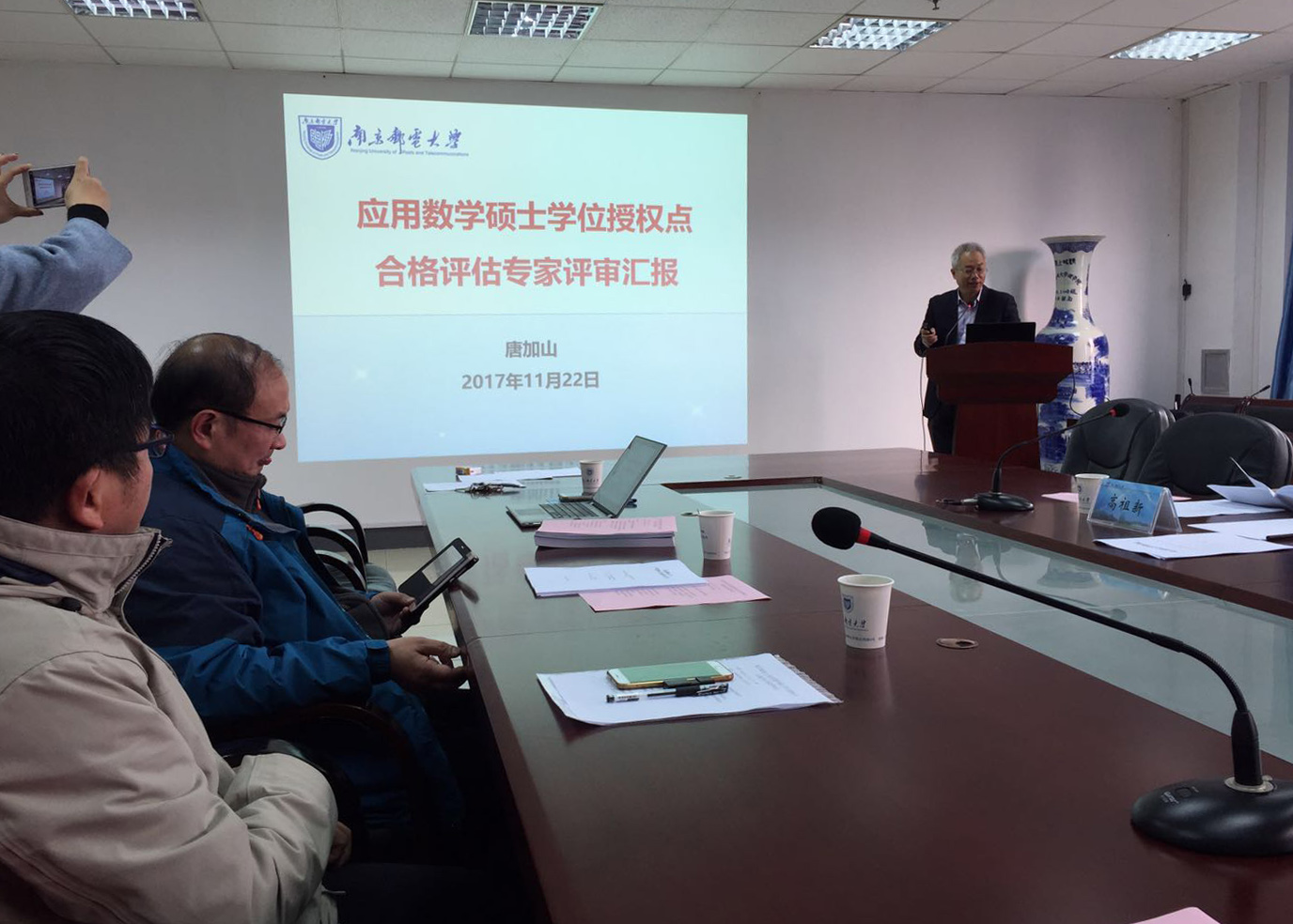 awc777万象城娱乐官网院长李兴鳌教授致欢迎词,他感谢各位专家为我院应用数学学位点合格评估把脉指导,李雷教授进行了表态发言,人事处处长王友国教授、研究生院邓艳老师以及应用数学硕士点的部分导师参加了评审会。
