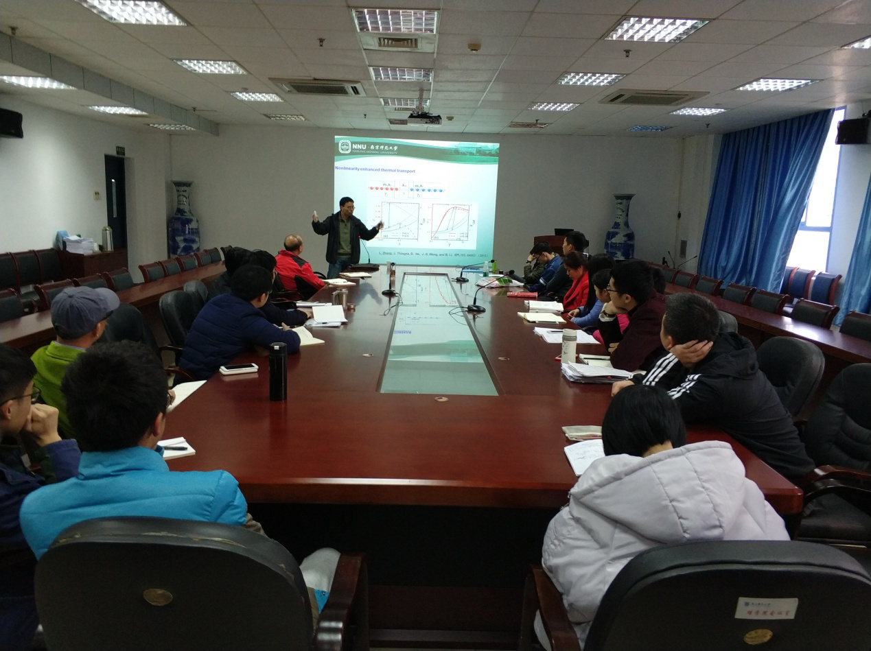 张力发教授讲座的题目为“低维热传导与声子学:界面、整流、拓扑声子及声子角动量”。张教授首先介绍了最大界面热导以及声子干涉现象,并提出了热整流基本条件以及发现了热整流反转;然后报告了声子霍尔效应热导率的拓扑相变现象;最后介绍了声子角动量方面的研究进展并预测了谷声子霍尔效应。