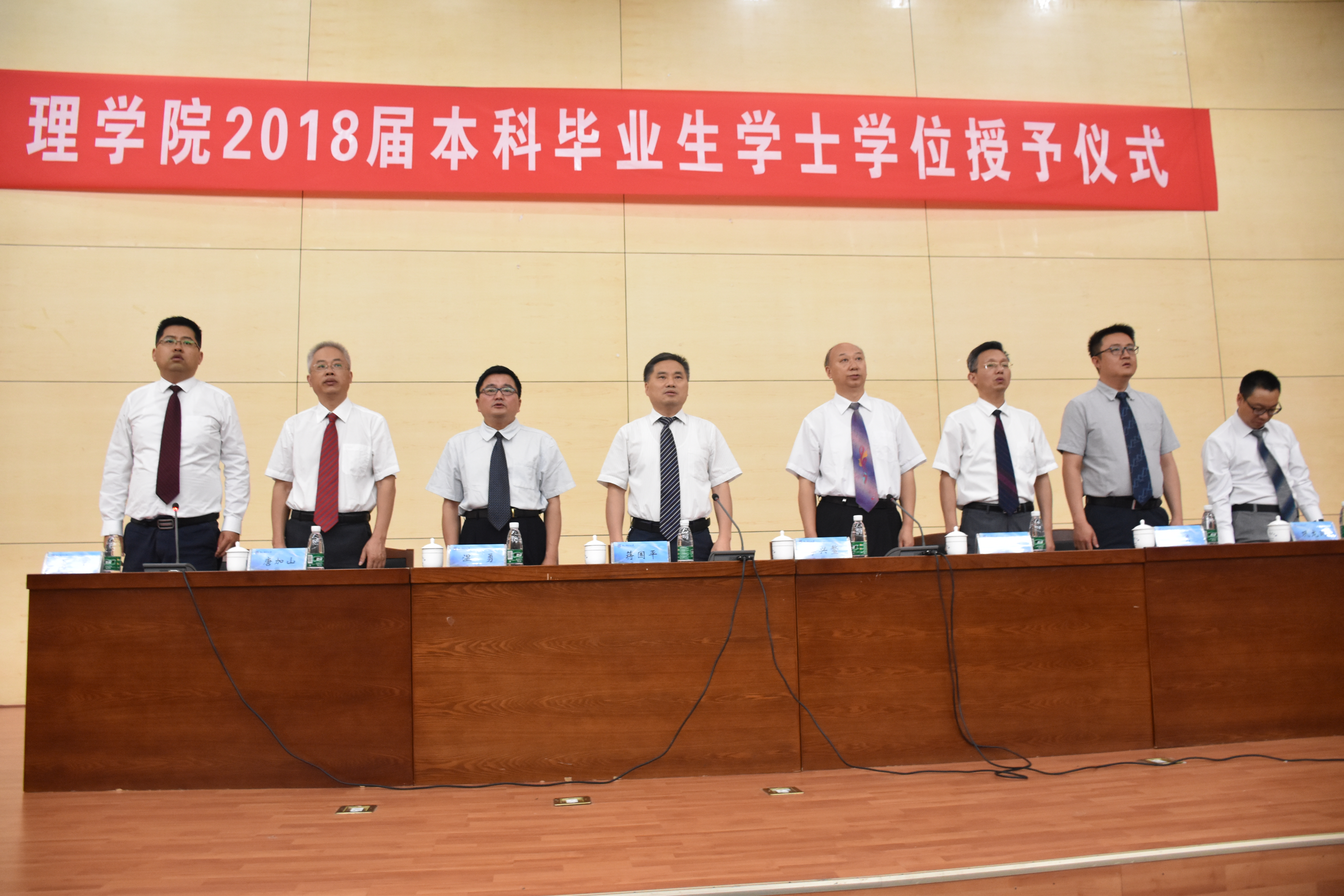 6月20日下午13:00,awc777万象城娱乐官网2018届本科毕业生学士学位授予仪式在图书馆四楼报告厅隆重举行。awc777万象城娱乐官网校党委常委、副校长蒋国平教授、awc777万象城娱乐官网院长李兴鳌教授,院党委书记温勇教授,副院长赵洪牛老师,副院长兼统计学系主任唐加山教授,副院长普勇教授,应用物理系主任巩龙延教授,教师代表应用统计学专业吴珍英老师,awc777万象城娱乐官网分团委书记王新光老师、毕业班辅导员胡国宝老师、全体毕业班同学、70余名同学家长及亲友参加仪式,仪式由院党委副书记、副院长高翔老师主持。