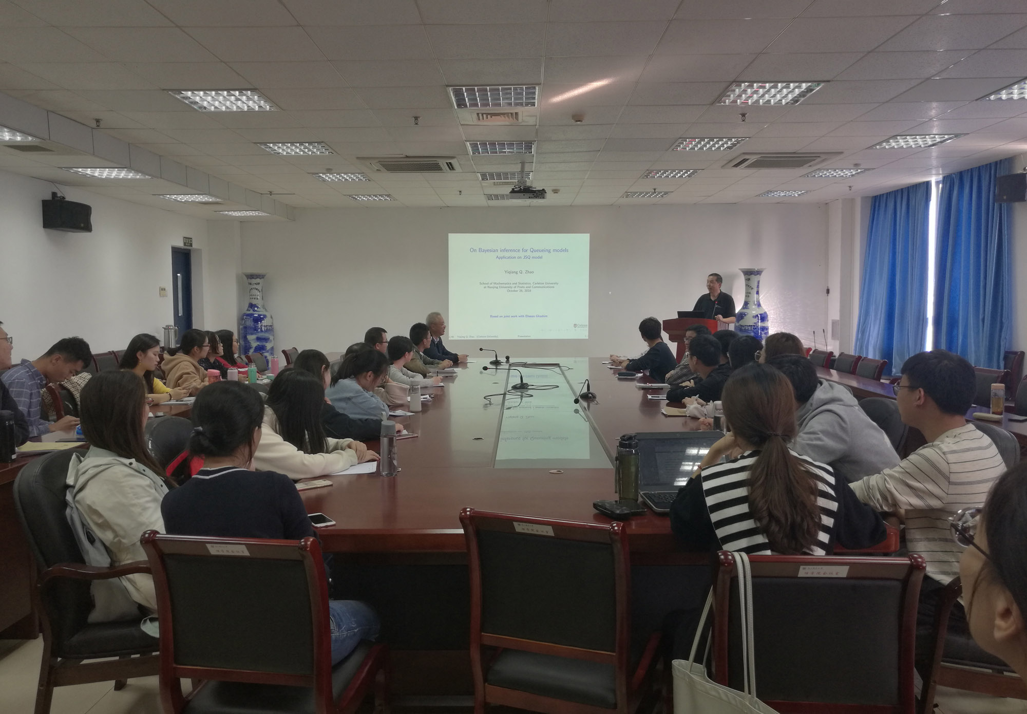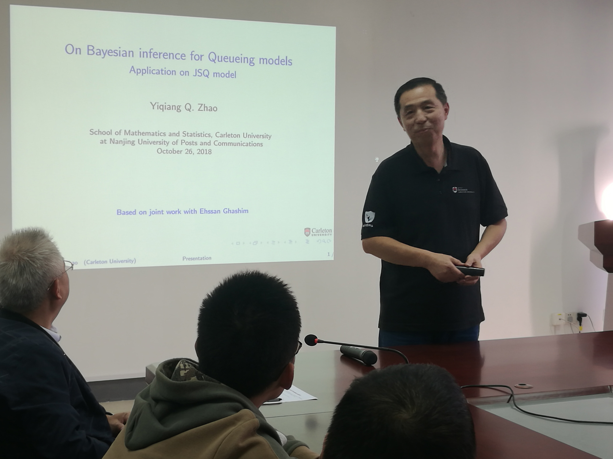 2018年10月26日下午15:00,awc777万象城娱乐官网第146期理学论坛在教2-314会议室如期举行,加拿大卡尔顿大学awc777万象城娱乐官网副院长赵以强教授应邀莅临论坛并做了题为“On Bayesian inference for queueing models application on JSQ model”的学术报告,报告会由awc777万象城娱乐官网副院长唐加山教授主持。