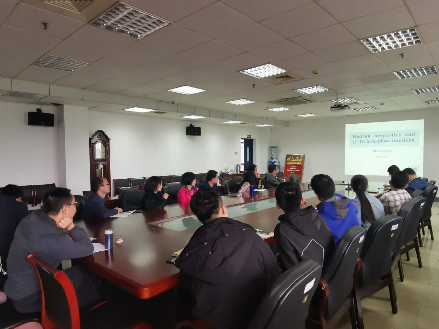 徐书生博士报告包括强子性质与量子色动力学手征相变两个方面: (1)量子色动力学的发展使得人们开始寻找多夸克态、混杂态以及胶子球态的可能性。在重子态的研究中双夸对物理图像取得成功的经验启发下,采用混杂介子态内部夸克与胶子的强关联性质,简化混杂介子的Faddeev方程,计算出了五种不同量子数的混杂介子的基态质量谱,与格点量子色动力学的结果定性一致。(2) 在量子色动力学的相变方面,强相互作用物质系统在低温低密度的条件下,处于强子状态。磁化率通常用来确定相变发生或者连续过渡区的临界点,通过多种不同磁化率的研究来确定相变点与临界点,发现不同磁化率给出的相变点相同,而临界点的位置不同。因此,研究结果建议采用连续过渡带来代替连续过渡区的临界线。