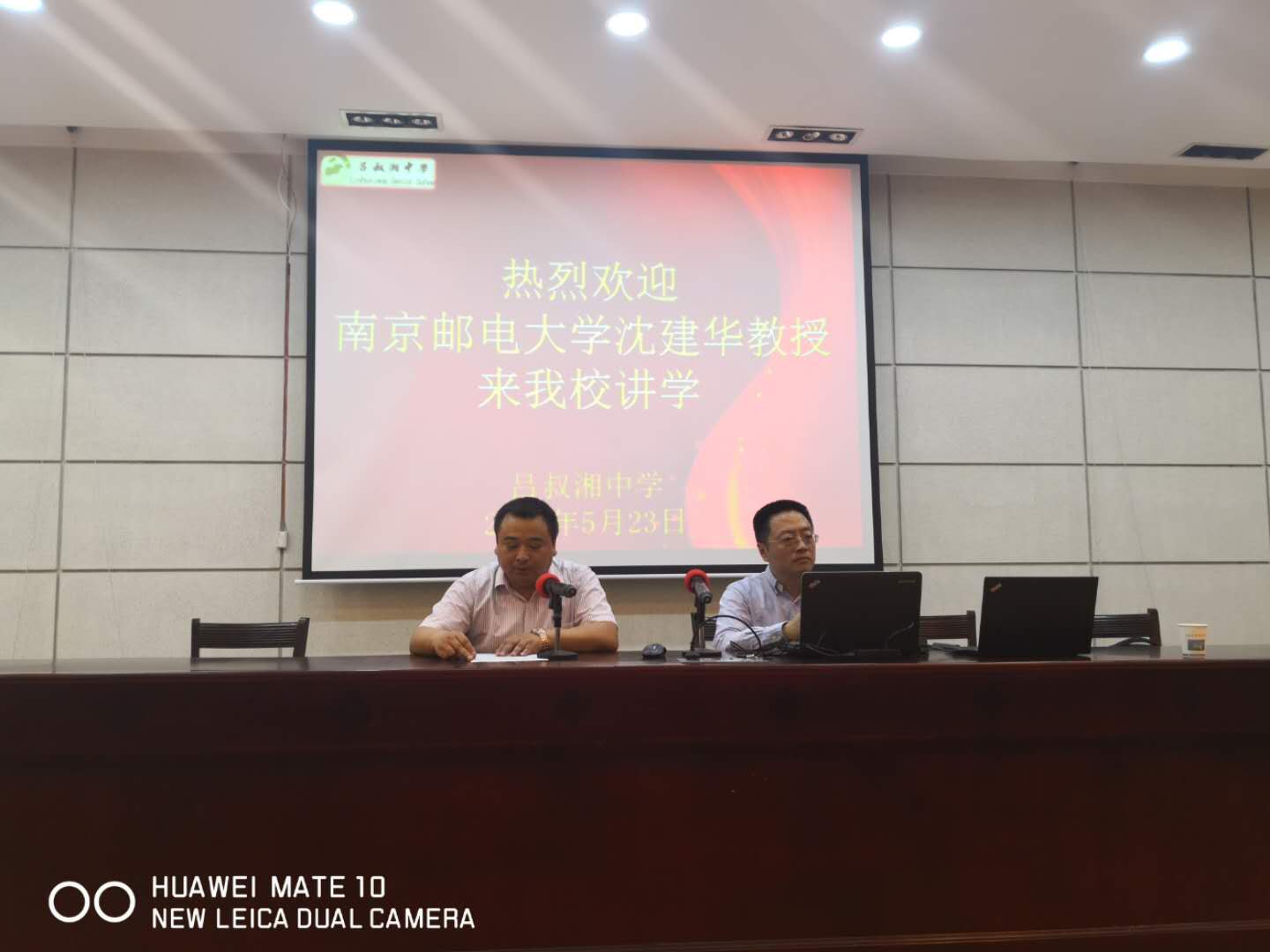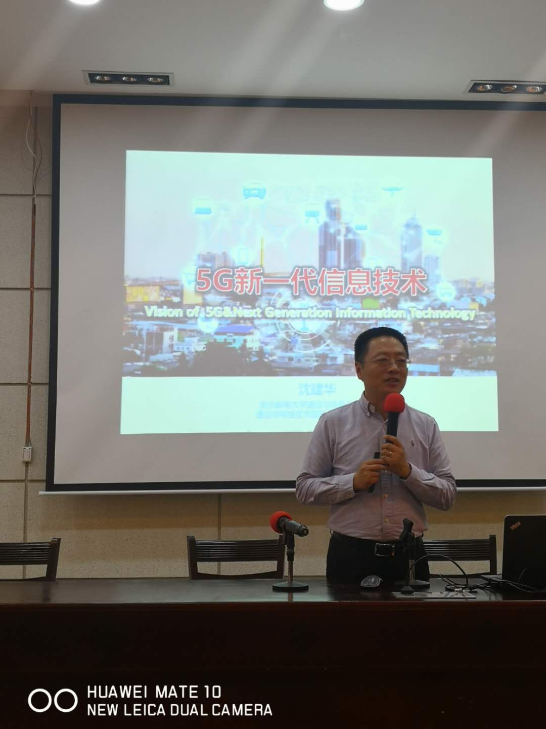 5月23日,awc777万象城娱乐官网邀请通信与信息工程学院副院长沈建华教授走进万象城官网优质生源基地——吕叔湘中学,为该校高一同学讲述5G新一代信息技术知识,awc777万象城娱乐官网党委副书记、副院长高翔陪同前往。