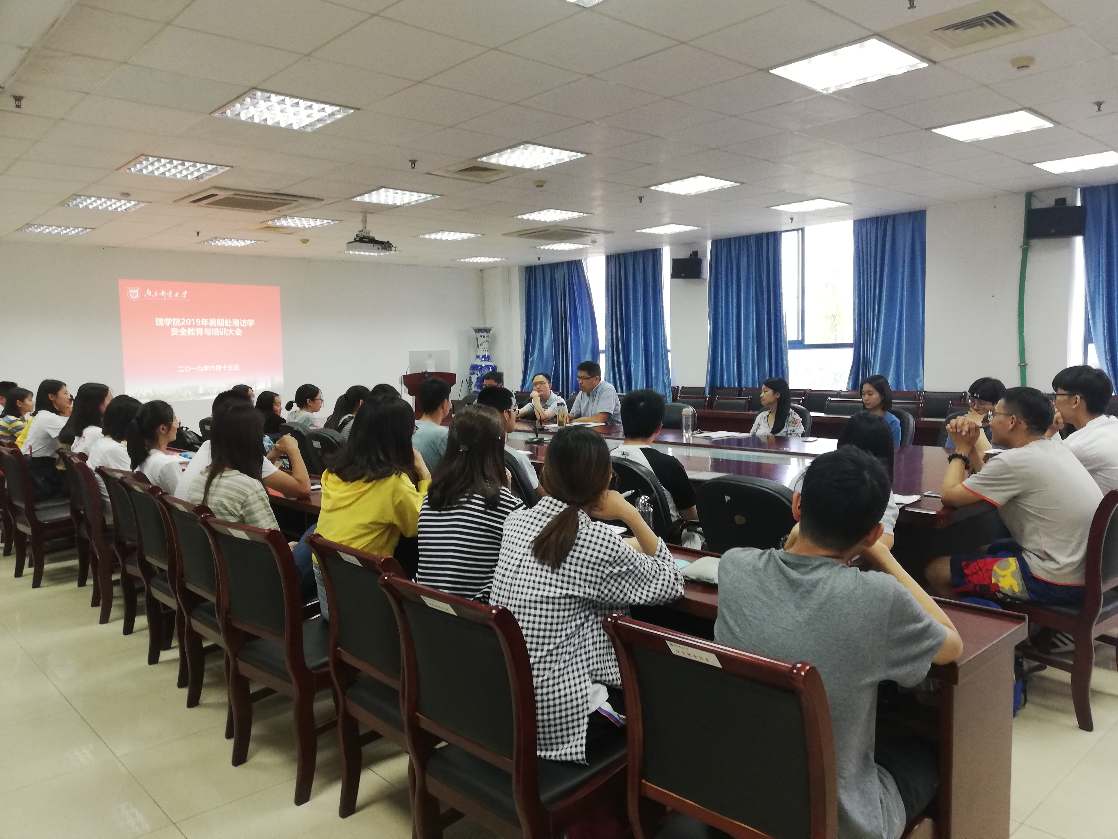 接着高翔副书记说此次访的目的是“读万卷书 行万里路”,给大家重点强调了安全意识、防范意识、团队意识、文明举止等,特别强调要严守团组纪律,注意政治安全,不该说的千万不说,不该做的坚决不做。金正猛教授随后也发表了简短的讲话,教育大家在访学活动中一定要有所得,并时刻注意自身安全。最后,武婷婷副教授通过PPT对赴港访学的交通、安全、食宿等作了详细的培训指导,并对部分同学的问题进行了解答。