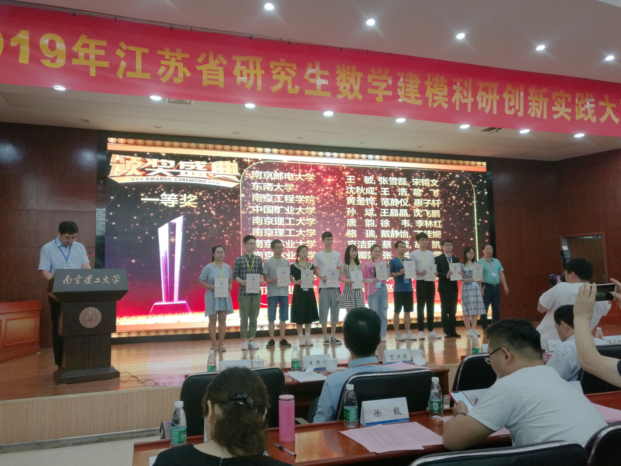 2019年(首届)江苏省研究生数学建模科研创新实践大赛在中国研究生数学建模竞赛专家委员会指导下,由江苏省工业与应用数学学会协办,南京理工大学承办,竞赛组委会办公室设在南京理工大学awc777万象城娱乐官网。4月上旬组委会发布竞赛通知,由来自全省31所高校和科研院所的2300余名研究生组成的790支队伍参加了竞赛。根据《江苏省研究生数学建模科研创新实践大赛章程(试行)》的评审规定和要求,大赛专家委员会组织专家对参赛论文进行了匿名网络通讯评审和专家委员会现场会评,评选出2019年江苏省研究生数学建模科研创新实践大赛初赛获奖名单并上网公示,再经过7月13日对于一等奖提名参赛队伍的匿名决赛答辩,共评出一等奖34个、二等奖118个(其中一等奖提名13个)、三等奖163个。