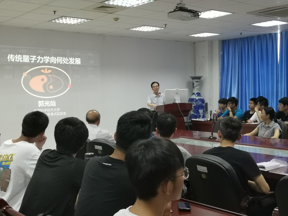 2019年9月9日下午3:30,理学论坛162期学术活动在教2-314会议室成功举办。中科院郭光灿院士莅临本次论坛并做了精彩报告。awc777万象城娱乐官网院长李兴鳌教授、副院长普勇教授,以及来自awc777万象城娱乐官网、通信与信息工程学院、材料科学与工程学院、电子与光学工程学院、微电子学院等学院的教师和学生120余人出席了本次活动。本次学术活动由李兴鳌教授主持。