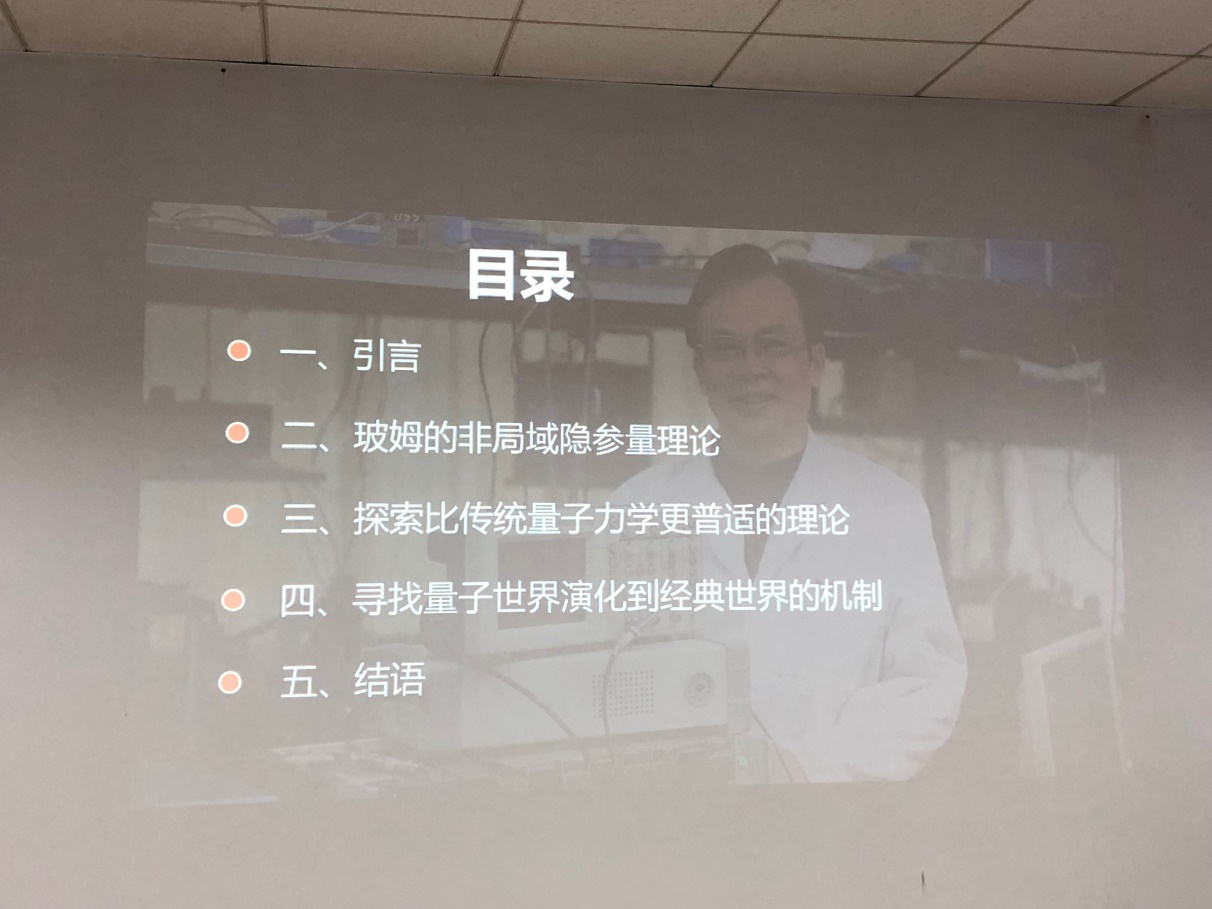 郭光灿院士为大家带来题为“传统量子力学将向何处发展”的精彩报告,主要包括玻姆的非局域隐参量理论、探索比传统量子力学更普适的理论、寻找量子世界演化到经典世界的机制等方面的内容。郭院士介绍了量子力学的发展历程、当前量子力学需要解决的关键问题、量子力学学科前沿的最新进展,并对量子力学未来的发展和应用做出了展望。郭院士的报告深入浅出,生动丰富,既对量子力学的基本概念和基本物理图像做出了清晰明确的介绍,也为当前量子力学中艰深抽象的关键问题给出了简单直接的解释,激发了参会师生的极大兴趣。