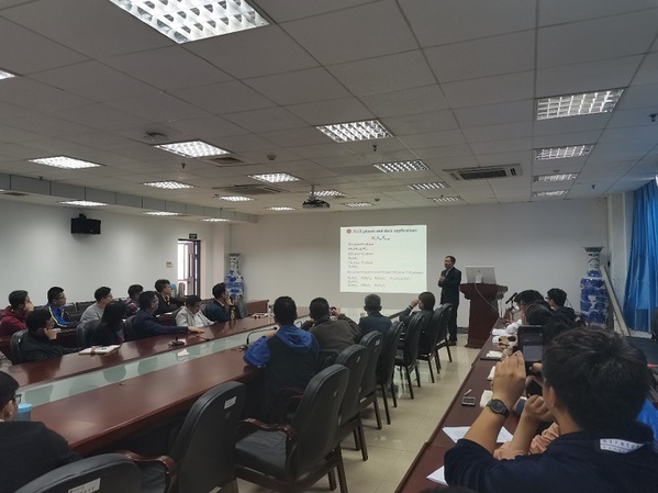 周延春研究员为大家带来题为“寻找不脆陶瓷的方法:从MAX相到MAB相陶瓷”的精彩报告,主要介绍了MAX相陶瓷(Mn+1AXn,M为过渡金属、A为IIIA或IVA族原子、X为C或N)的多层次结构与宏观性能的关系,提出不脆、可加工陶瓷的判据,进而利用这些判据寻找新的超高温硼化物陶瓷。并根据MAX相的结构和性能特征,提出了预测新型三元层状硼化物的结构和性能的方法。在此基础上,设计并制备了二维过渡金属硼化物MBene。周研究员的报告结合大量生动的事例,使原本复杂晦涩的陶瓷加工过程变得简单易懂,既对新型功能陶瓷的基本概念和基本加工过程做出了清晰明确的介绍,也为当前航天领域功能陶瓷应用中的关键技术问题给出了简单明了的解释,激发了参会师生的浓厚兴趣。