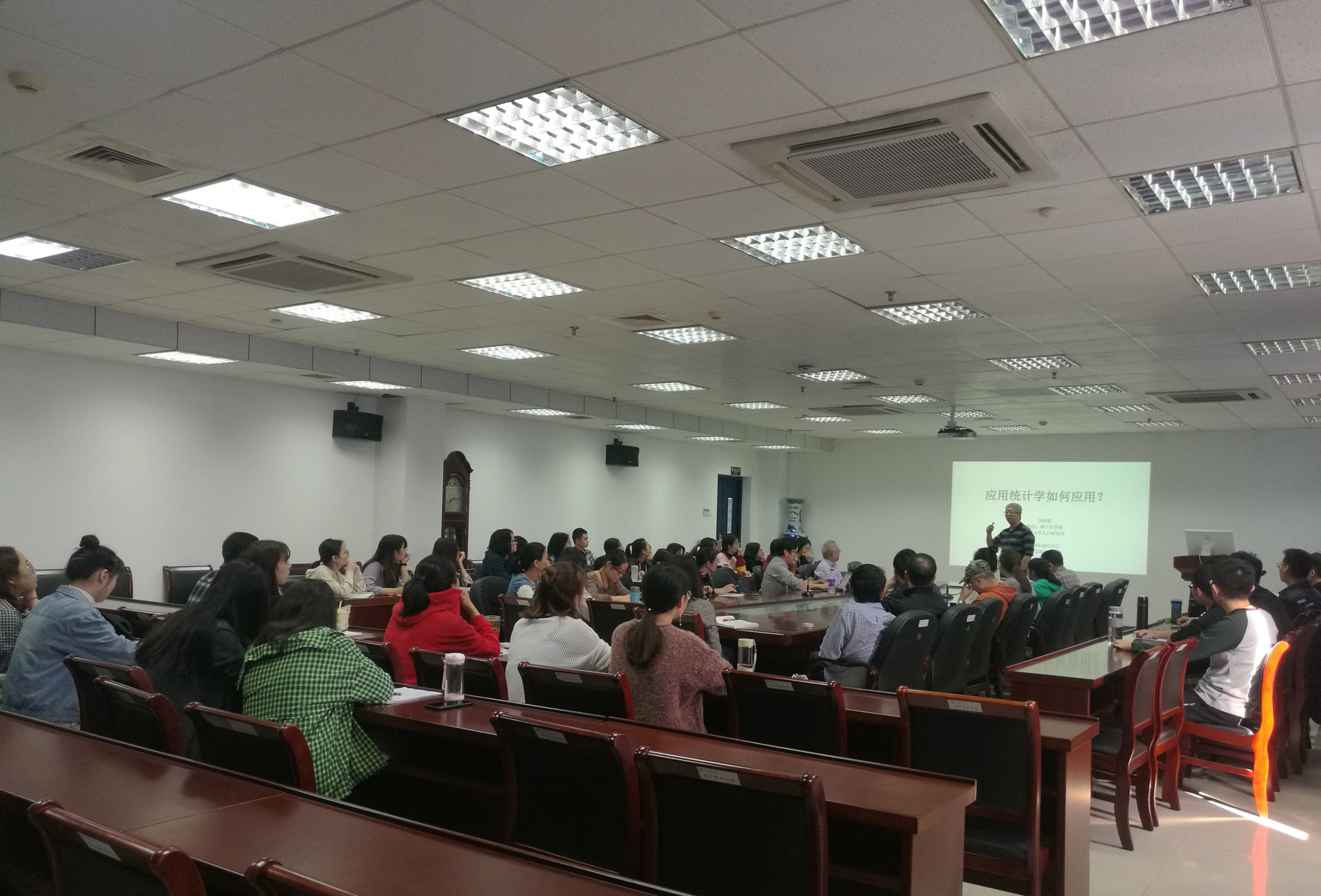 在报告中,乔晓春教授结合自身的研究经历,从统计学是如何产生的、统计学的另一个来源、统计学的争论、统计学在中国的形成、中国统计学的转变、是实质性学科还是方法学科?统计学的分科、如何学好应用统计学等多个方面介绍了统计学的昨天、今天和明天,乔教授的报告深入浅出、内容丰富、重点突出、启发性大、受到了与会师生的一致好评,报告会后,乔教授细则回答了听众的疑问和问题。