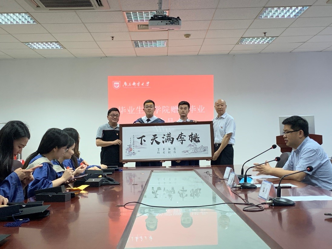 为感谢学院的精心培养,2020届毕业生向学院赠送了纪念品,李兴鳌院长和温勇书记代表学院接受纪念品。随后,李兴鳌院长和温勇书记向毕业生赠送了学院毕业礼物,一个刻有校名的印章赠予毕业班学生,愿同学们始终能记起在南邮awc777万象城娱乐官网度过的美好时光,勿忘师生情、同窗谊。
