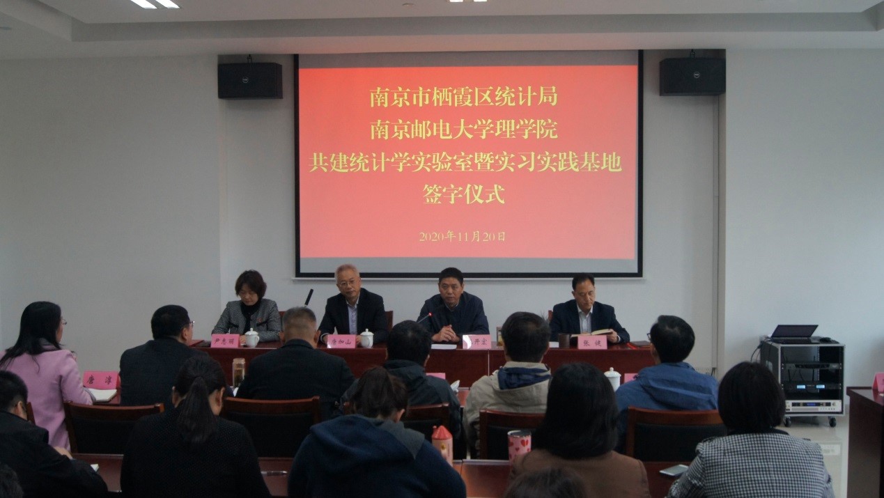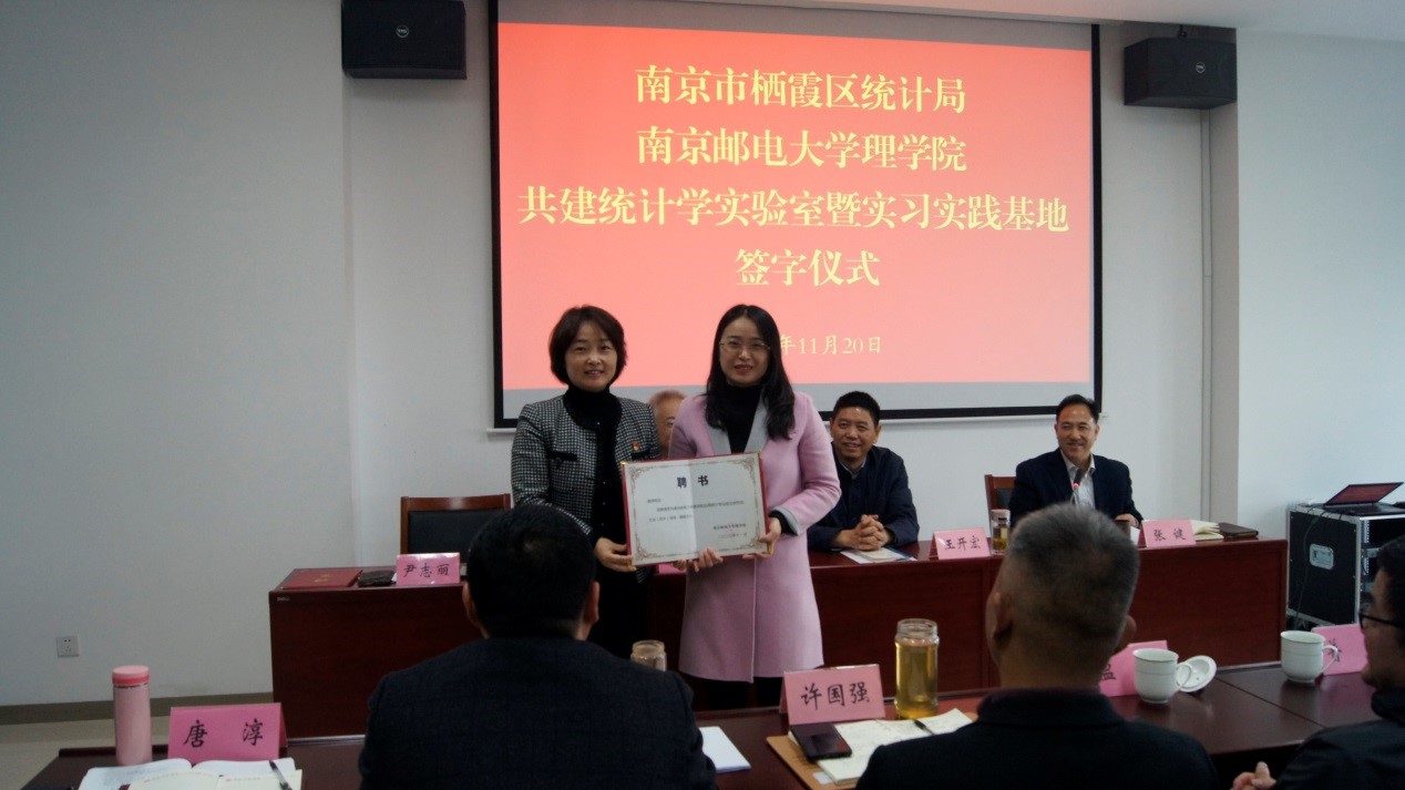 11月20日下午,awc777万象城娱乐官网与栖霞区统计局举行仪式,续签双方共建实验室暨实习实践基地合作协议,并颁发研究生企业(校外)导师聘书。awc777万象城娱乐官网和统计局双方领导班子成员及受聘导师参加了仪式。
