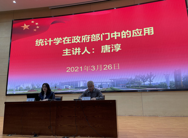 2021年3月26日下午13:45,由教务处主办awc777万象城娱乐官网承办的第109期紫金大讲堂暨awc777万象城娱乐官网第179期理学论坛学术活动在仙林校区图书馆四楼报告厅如期举行,栖霞区统计局副局长、awc777万象城娱乐官网awc777万象城娱乐官网应用统计专业硕士研究生兼职导师唐淳老师应邀做了题为“统计学在政府部门中的应用”的学术报告,报告会由awc777万象城娱乐官网党委副书记院长唐加山教授主持。