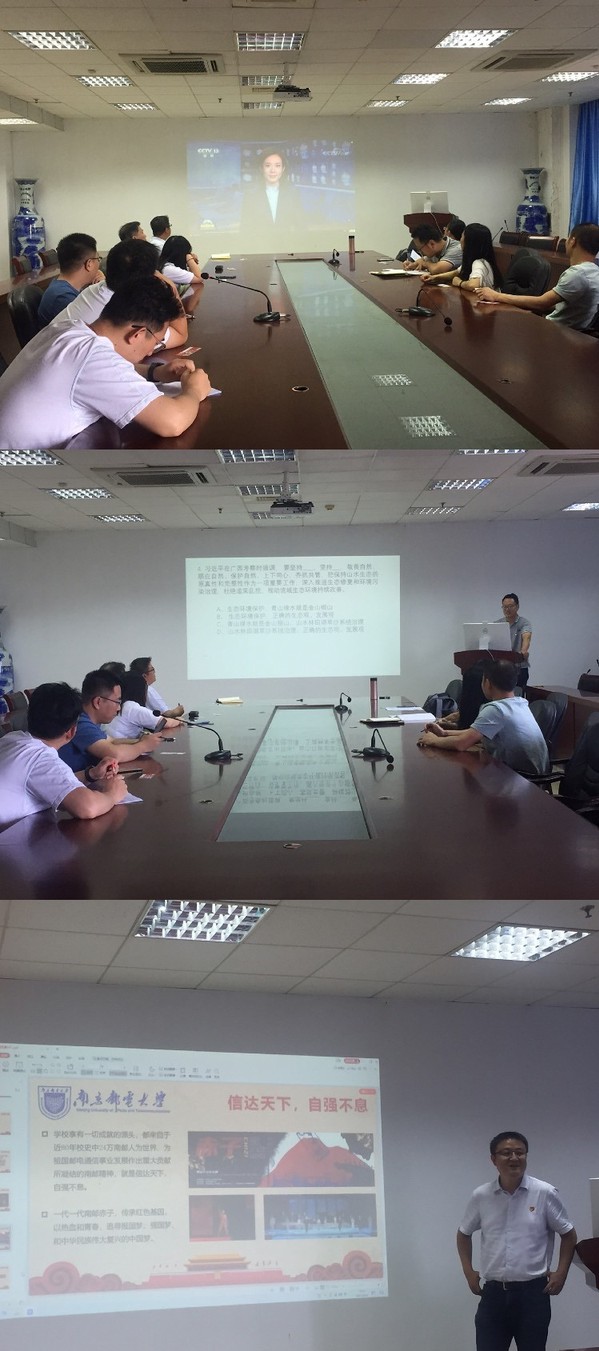 普勇副院长对本次主题学习会进行了指导,并为支部党员上了一堂生动的党课。党课以“回顾百年光辉党史”为题,首先介绍了学习党史的意义,后从新民主主义革命时期、社会主义革命和建设时期、改革开放和社会主义现代化建设时期讲述了中国共产党百年光辉历史的发展历程。紧接着,以“追梦赤子心—红色南邮的报国之路”为题介绍了南邮的创校史和兴校史,并对南邮“赓读红色基因,讲好革命故事”主题巡展向在座党员同志们进行了宣传。最后,普勇副院长就党建、党日活动开展和应用物理专业建设等方面提出了要求。