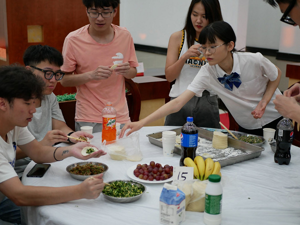 进入会场后,毕业生和老师们纷纷在签名墙上留下自己的姓名并合影留念。入座后,师生们以桌为单位开始包饺子,老师们也纷纷前往学生的桌前与同学们一起包饺子。随后,辅导员胡国宝老师带领同学们唱《再见》,告别大学四年青春;院党委副书记汪颖老师和同学们齐唱《后来》,阵阵歌声中都充满着大家对未来的期待。接着,院党委书记尹志丽老师发表讲话,祝福大家前程似锦。