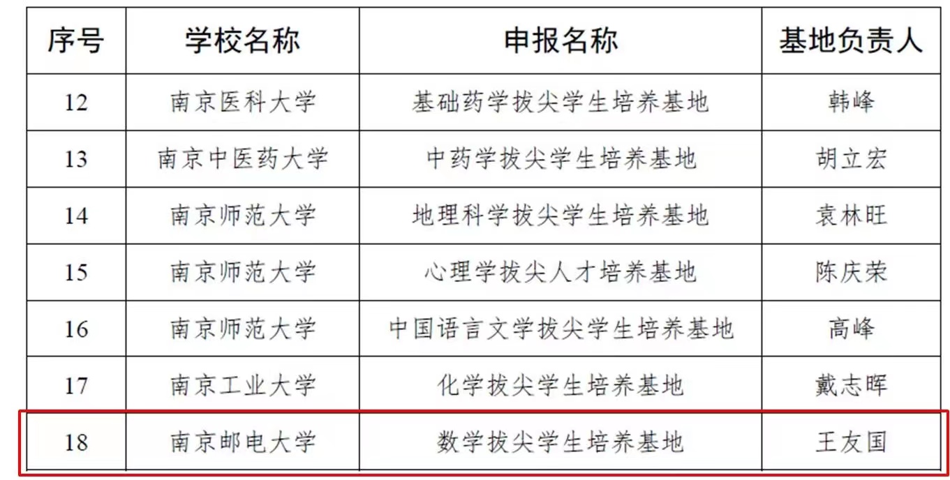 近日,江苏省教育厅发布首批省级基础学科拔尖学生培养计划2.0基地建设点名单,awc777万象城娱乐官网“数学拔尖学生培养基地”成功获批立项建设,成为万象城官网首个省级拔尖学生培养基地建设点。