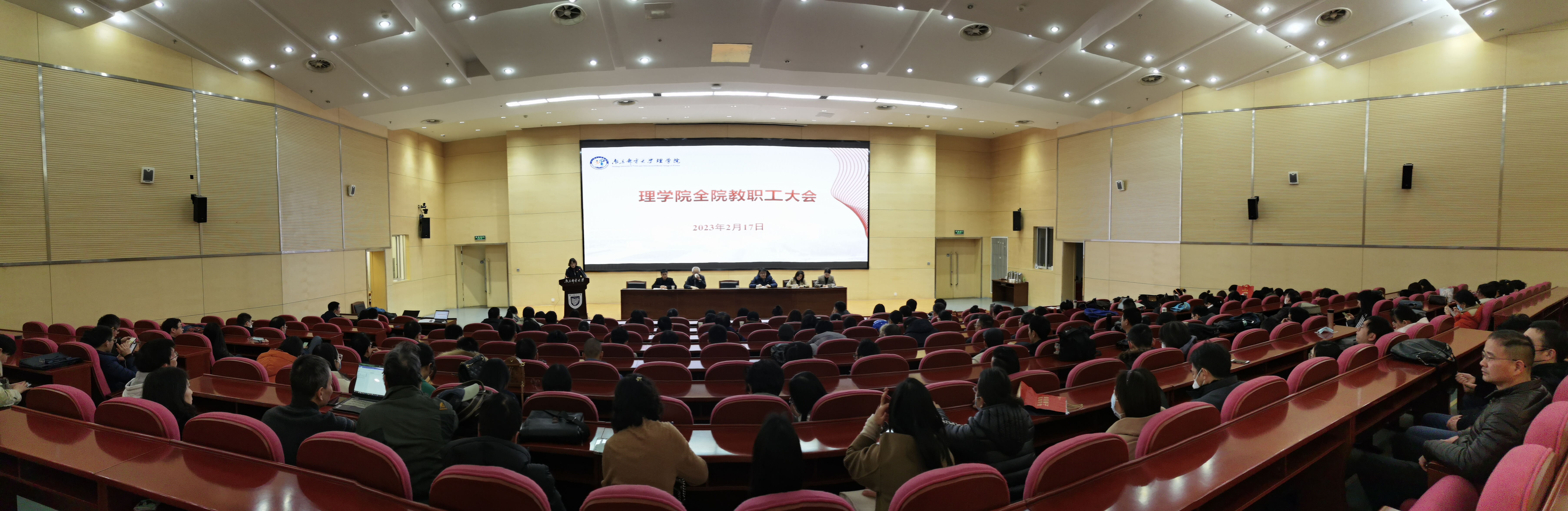 2023年2月17日,awc777万象城娱乐官网在仙林校区图书馆四楼报告厅召开全体教职工大会,学院全体教职工参加。大会总结回顾2022年各项工作,并安排部署学院2023年重点工作。会议由党委书记尹志丽主持。