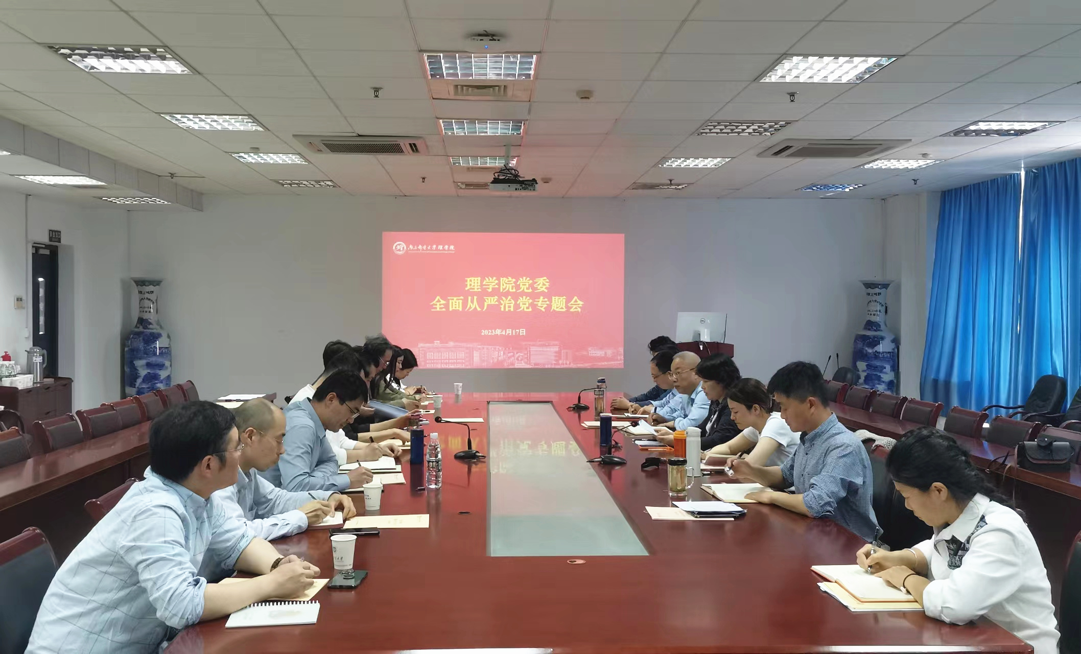 4月17日,awc777万象城娱乐官网党委召开2023年度全面从严治党工作专题会。学院领导班子成员,党支部书记,系、中心主任参加会议。会议由学院党委书记尹志丽主持。