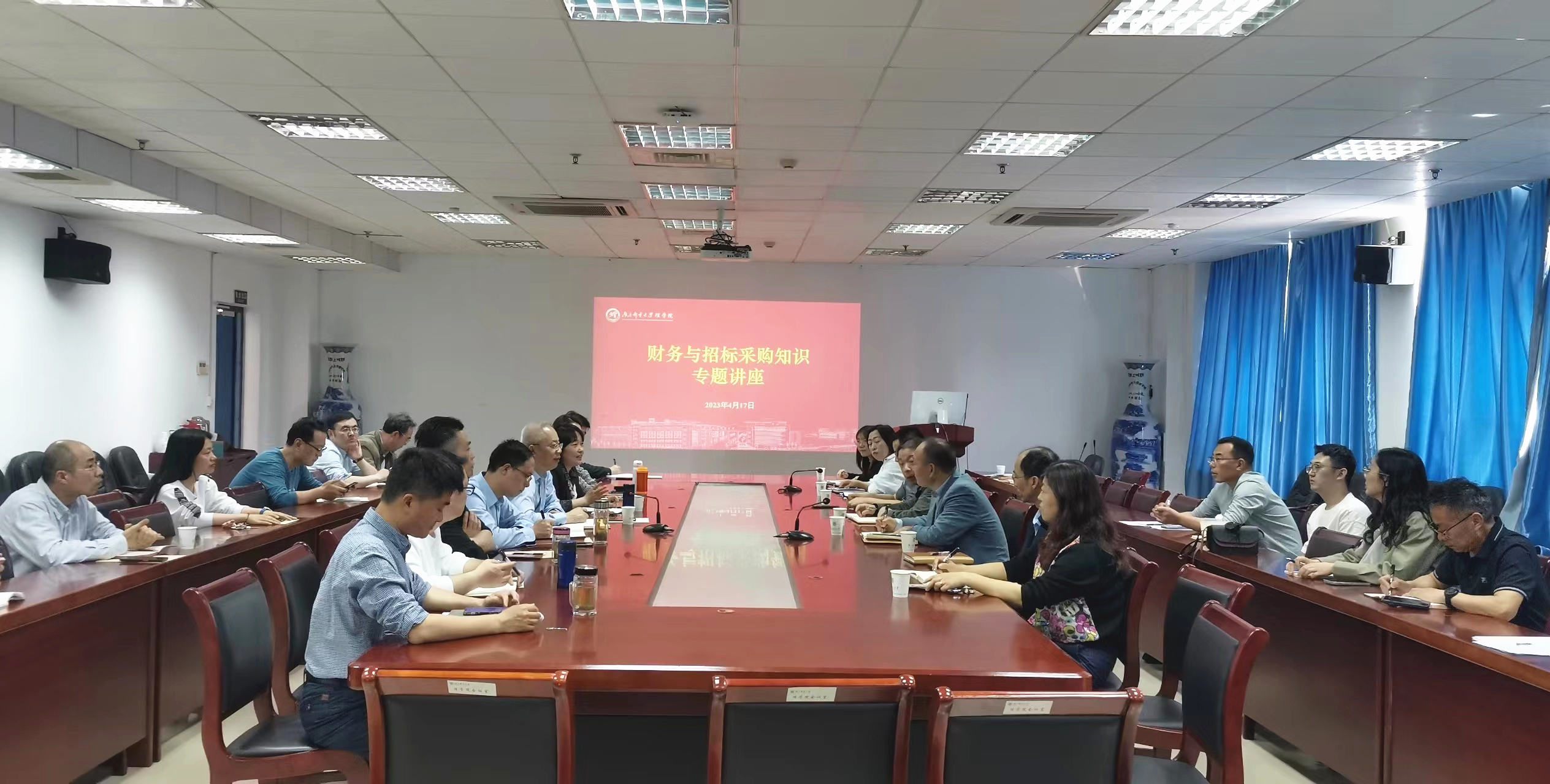 为了更好的学知识、强业务、提水平,会后还邀请学校财务处、采购招标管理办公室对全体参会人员开展了财务与招标采购知识专题讲座。