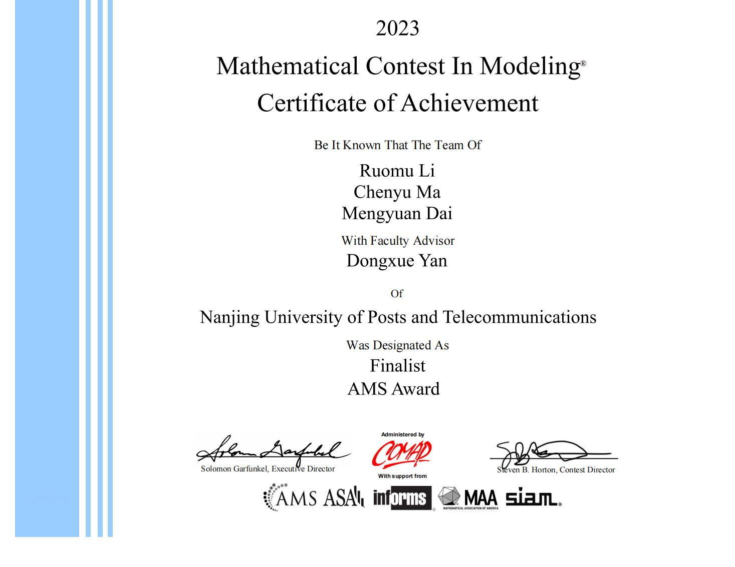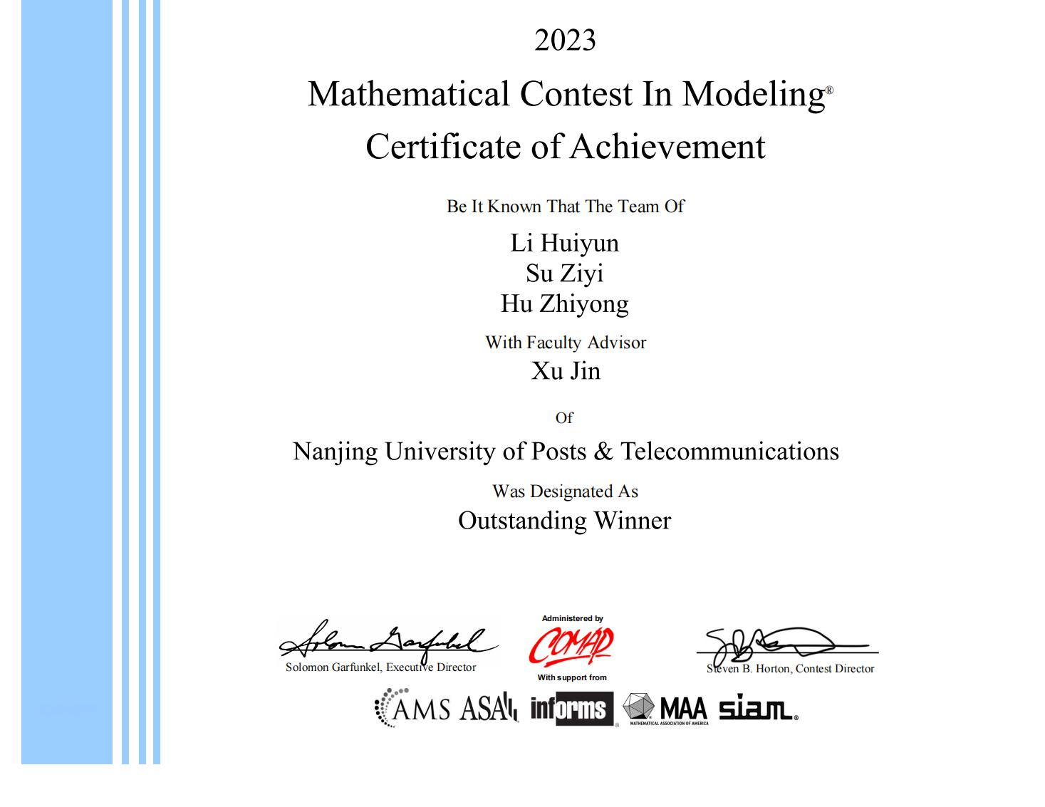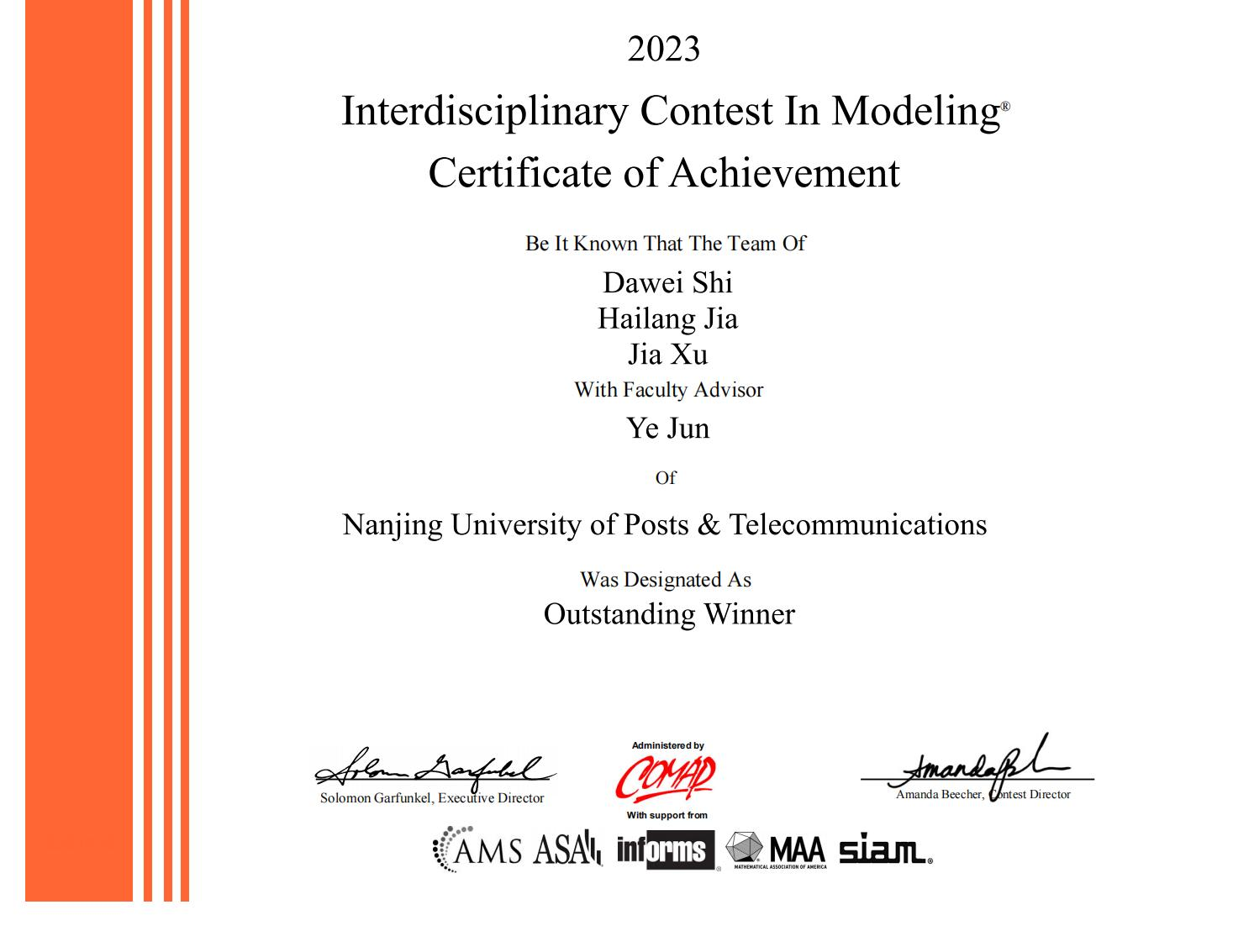 2023 年美国大学生数学建模竞赛和跨学科建模竞赛结果今日公布,全球有21858 个队参加了本届竞赛,共评出特等奖(Outstanding Winner)37 项,万象城官网金栩老师和叶军老师指导的队各获 1 项特等奖(Outstanding Winner),闫冬雪老师指导的队获 AMS Award(美国数学学会奖),这是万象城官网首次同时获得两个特等奖(Outstanding Winner)及首次获得 AMS Award(美国数学学会奖),竞赛成绩取得新的突破,万象城官网获特等奖数量并列(与上海交通大学、天津大学)全国第四名,位列江苏省第一名(江苏高校一共获得三个特等奖)。另外,万象城官网学生还获得特等奖提名奖(Finalist)15 项、一等奖(Meritorious Winner)44 项、二等奖(Honorable Mention)109 项,各奖项的获奖数量均创历史新高。