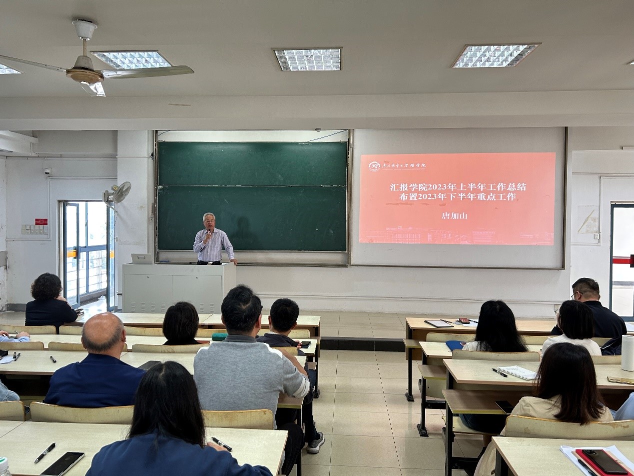 院长唐加山全面总结了学院2023年上半年工作成效,并安排部署了下半年重点工作任务。他表示,上半年,经过全院教职工的共同努力,学院在党建工作、师资队伍、学科建设、专业建设、科研工作、教学工作、学科竞赛、人才培养、学生工作、安全工作等方面均取得了阶段性成果。他强调,下半年,学院将围绕学科内涵建设、高层次人才引育、基础学科拔尖人才培养、本科教育教学评估等方面开展工作。他要求,全体教职工要认真落实学院各项工作安排,进一步推进学科建设发展,提高人才培养质量,提升教育教学水平,优化学生教育管理,增强科技创新能力,加大高水平科研成果产出,维护校园安全稳定,为学院的发展做出新的更大的贡献。
