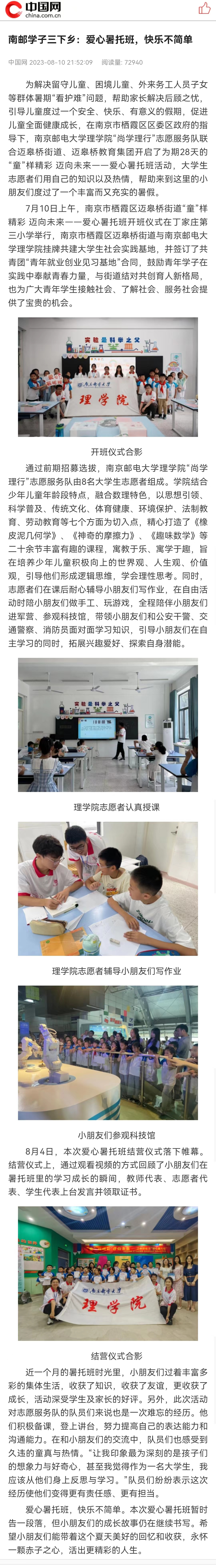 【中国网】南邮学子三下乡:爱心暑托班,快乐不简单