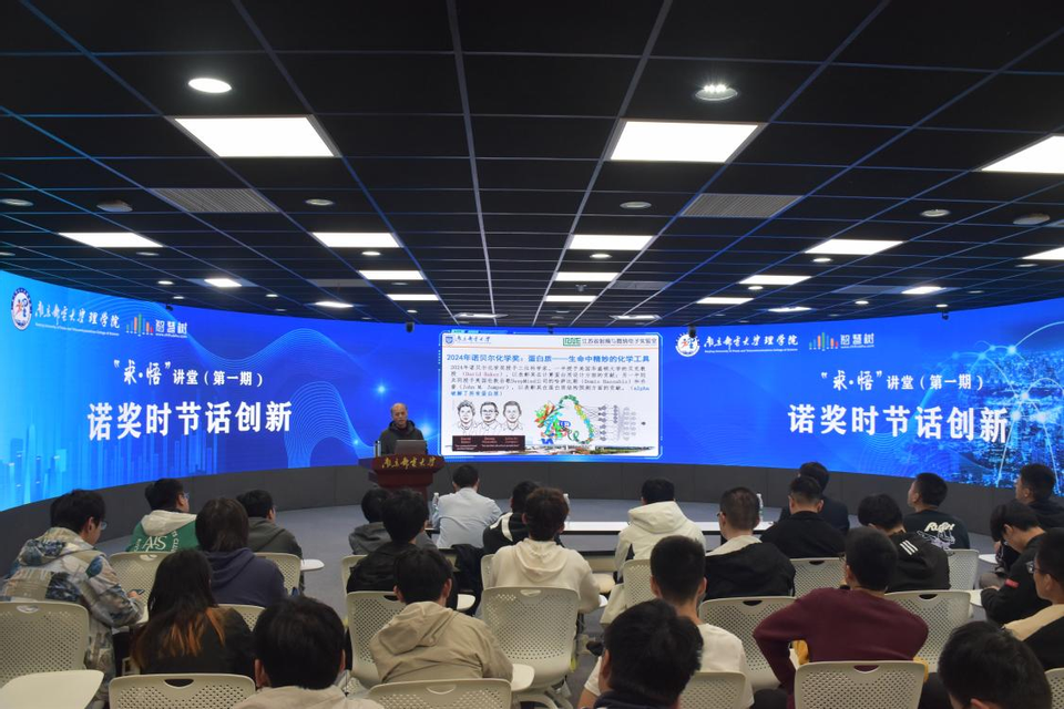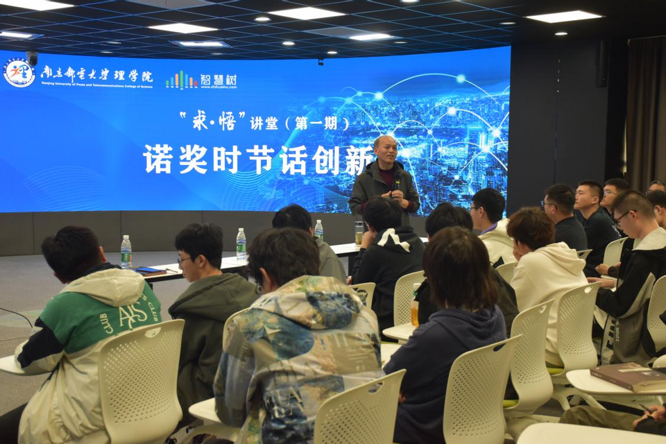 10月30日下午,awc777万象城娱乐官网“求·悟”讲堂第一期在仙林校区融创共享教学空间开讲。本次讲座特邀原江苏大学校长颜晓红教授作题为“诺奖时节话创新”的专题报告。awc777万象城娱乐官网党委书记李永涛教授、副院长金正猛教授、信息与计算科学系部分老师和2023级数学基地班全体同学参加此次活动。活动由金正猛副院长主持。